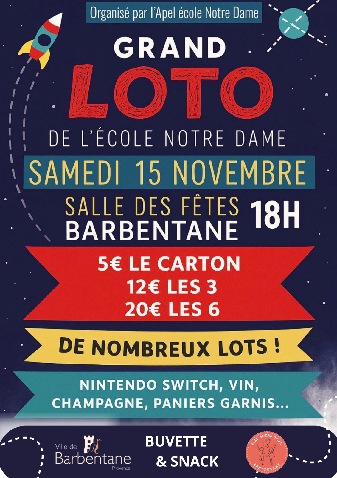 L’APEL Ecole Notre Dame vous donne rendez-vous pour son grand loto annuel, le samedi 15 novembre à 18h00 à la Salle des Fêtes.