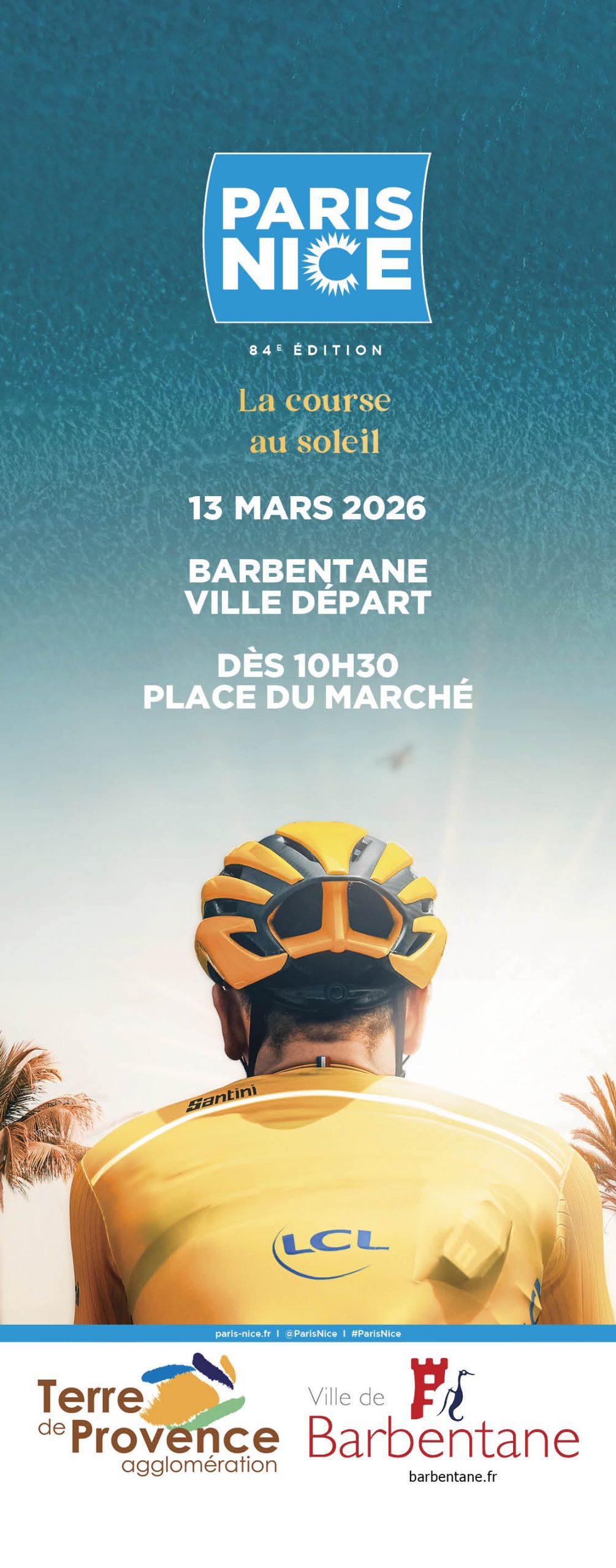 À l’occasion du départ de la 6ème étape de la course du Soleil, le Paris-Nice, le vendredi 13 mars à Barbentane, retrouvez les animations dès 10h aux abords de la salle des fêtes.
