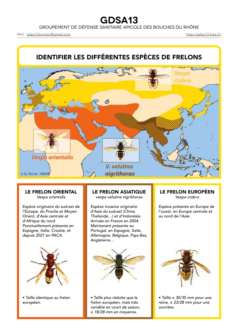 Il permettra également de comparer les données que les services techniques transmettront aux services de Terre de Provence Agglomération, qui seront mis en perspectives aux résultats des années précédentes, et de préciser ainsi les connaissances sur divers sujets : répartition géographique du frelon, incidence de la météo sur sa date d’apparition et sur le nombre de captures, attractivité et sélectivité des pièges, attractivité des appâts…