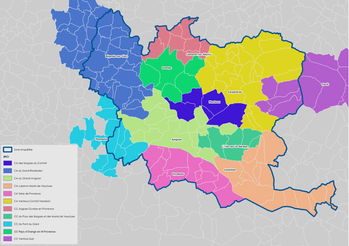 En coordination avec l’agence d’urbanisme Rhône Avignon Vaucluse et le CEREMA, la société Alyce va réaliser pour le compte de 12 collectivités territoriales une grande enquête mobilité dans 131 communes des départements de Vaucluse, du Gard et des Bouches-du-Rhône, pour laquelle le Grand Avignon est maitre d’ouvrage. Celle-ci va constituer une base de données correspondant à une photographie des mobilités des habitants de notre bassin de vie.